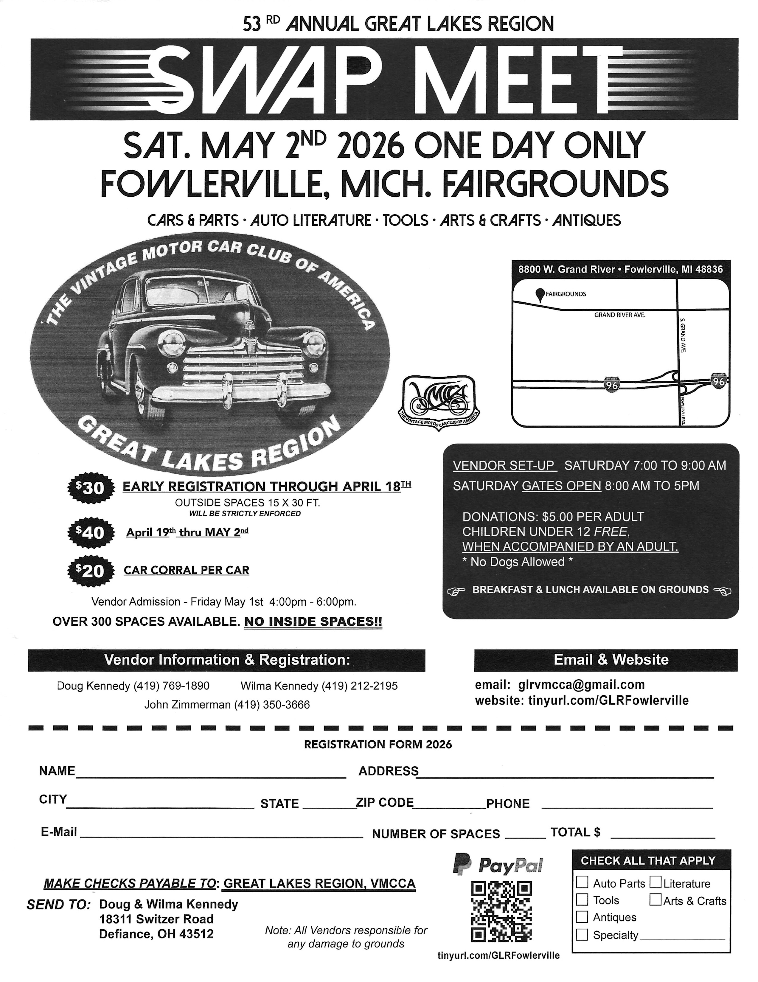 419-769-1890 or glrvmcca@gmail.com